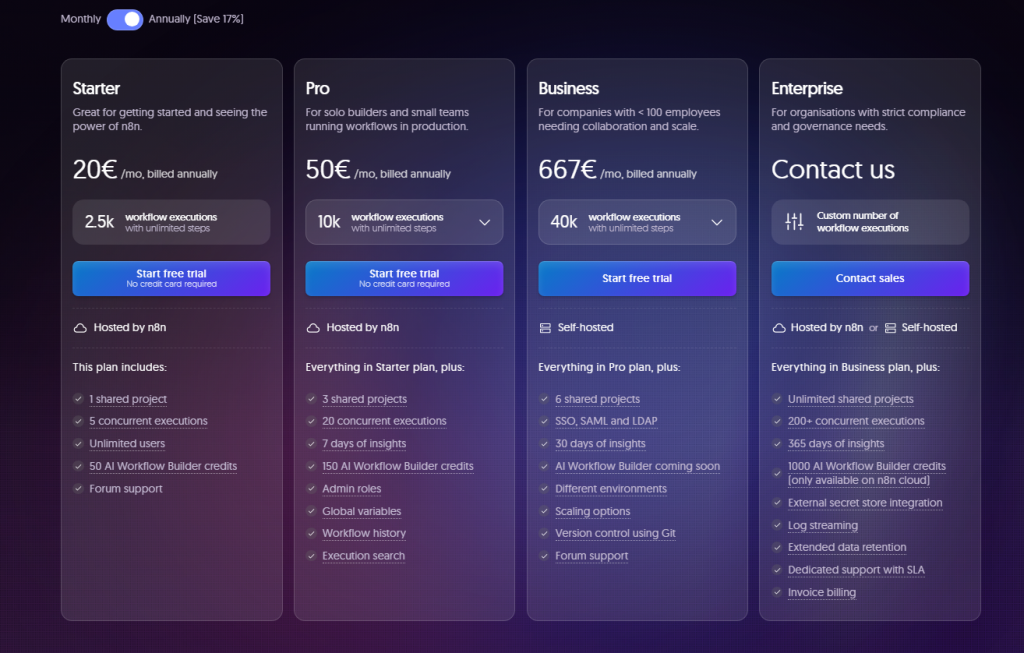👉 This is the most balanced plan for professionals using n8n for business automation.